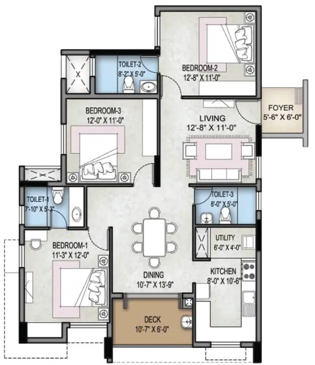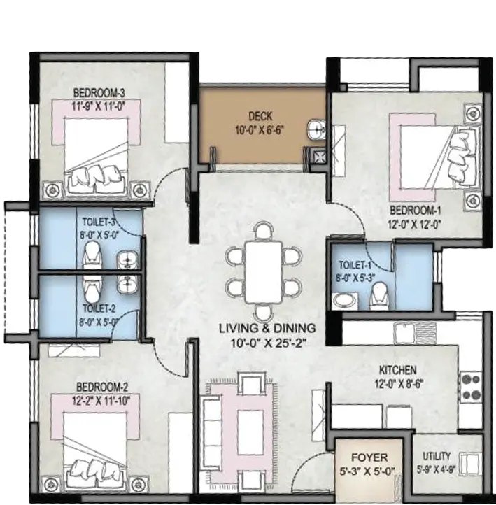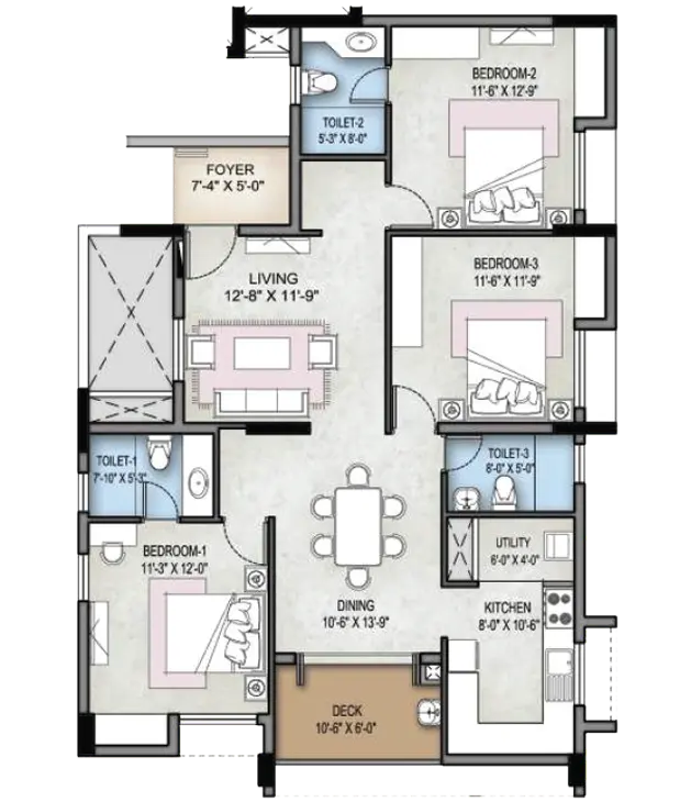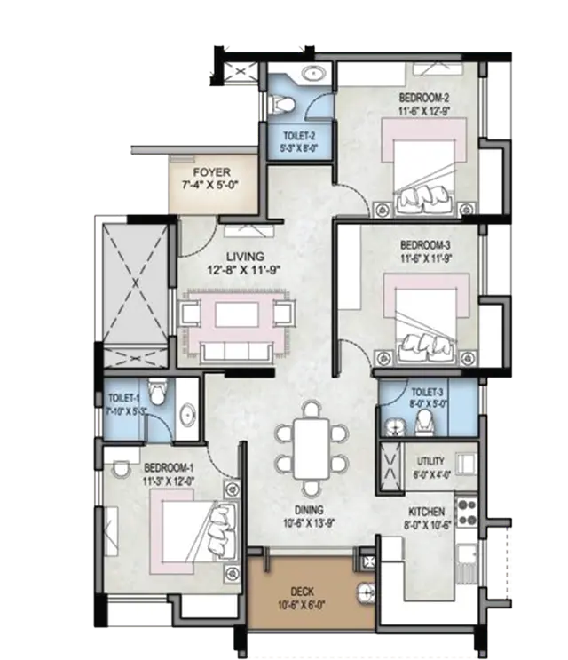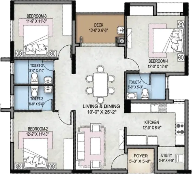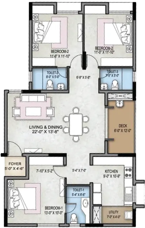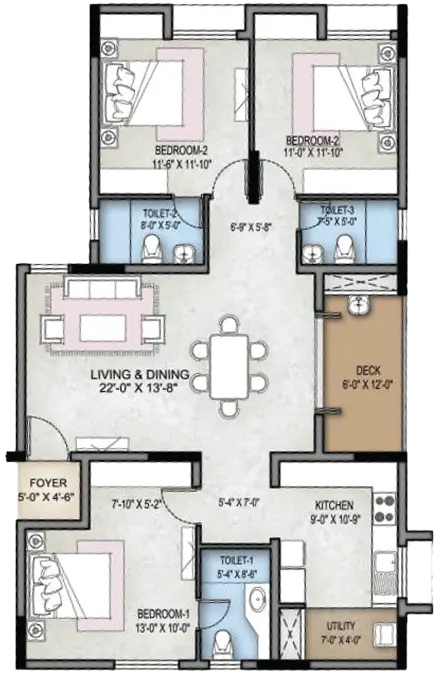 Selvam Crown 3BHK Floor Plan